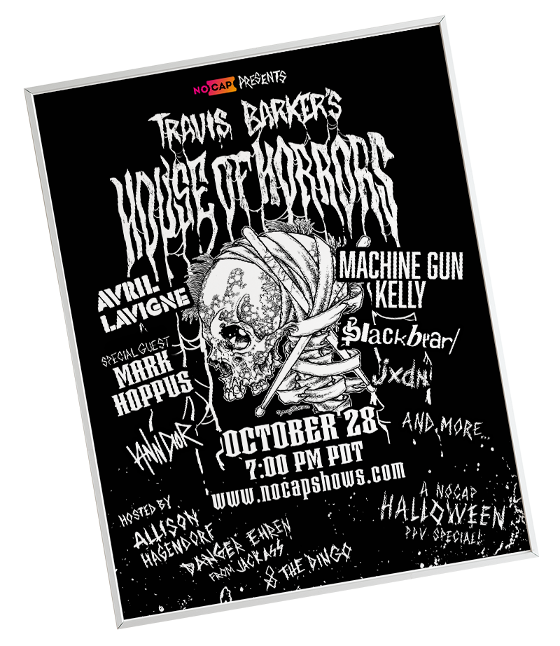 Scuba was commissioned to create some poster art and merch for travis Barker's 2021 halloween livestream.